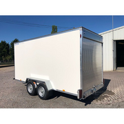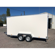 With a payload of approximately 2,650kg, the Blue Line 14' twin axle box van trailer is ideal for all your domestic, leisure, industrial and commercial needs. The phenol coated anti-slip floor is completely flat and free of bolts, rivets, studs or any other fixings that could damage your cargo or cause injury while loading and unloading. The plain white glass reinforced plastic box panels are tough, easy to clean and provide the perfect surface on which you can advertise or apply logos and graphics.