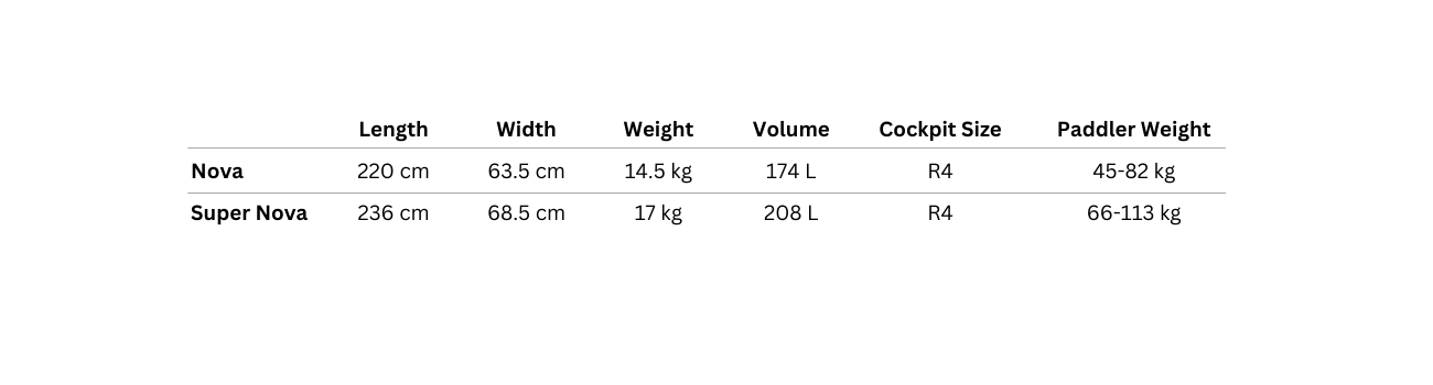 A whitewater experience tailored to you. The Nova and SuperNova are uniquely designed for two different paddler size ranges to deliver superior performance and unforgettable experiences. The construction of these high-performance play machines is inspired by the full-slice models of the late 90s and early 2000s, with a slew of modern features that only Dagger can execute to perfection. Saddle up, slice, surf, and spin your way to hours of amusement in the all-new Nova and Supernova.